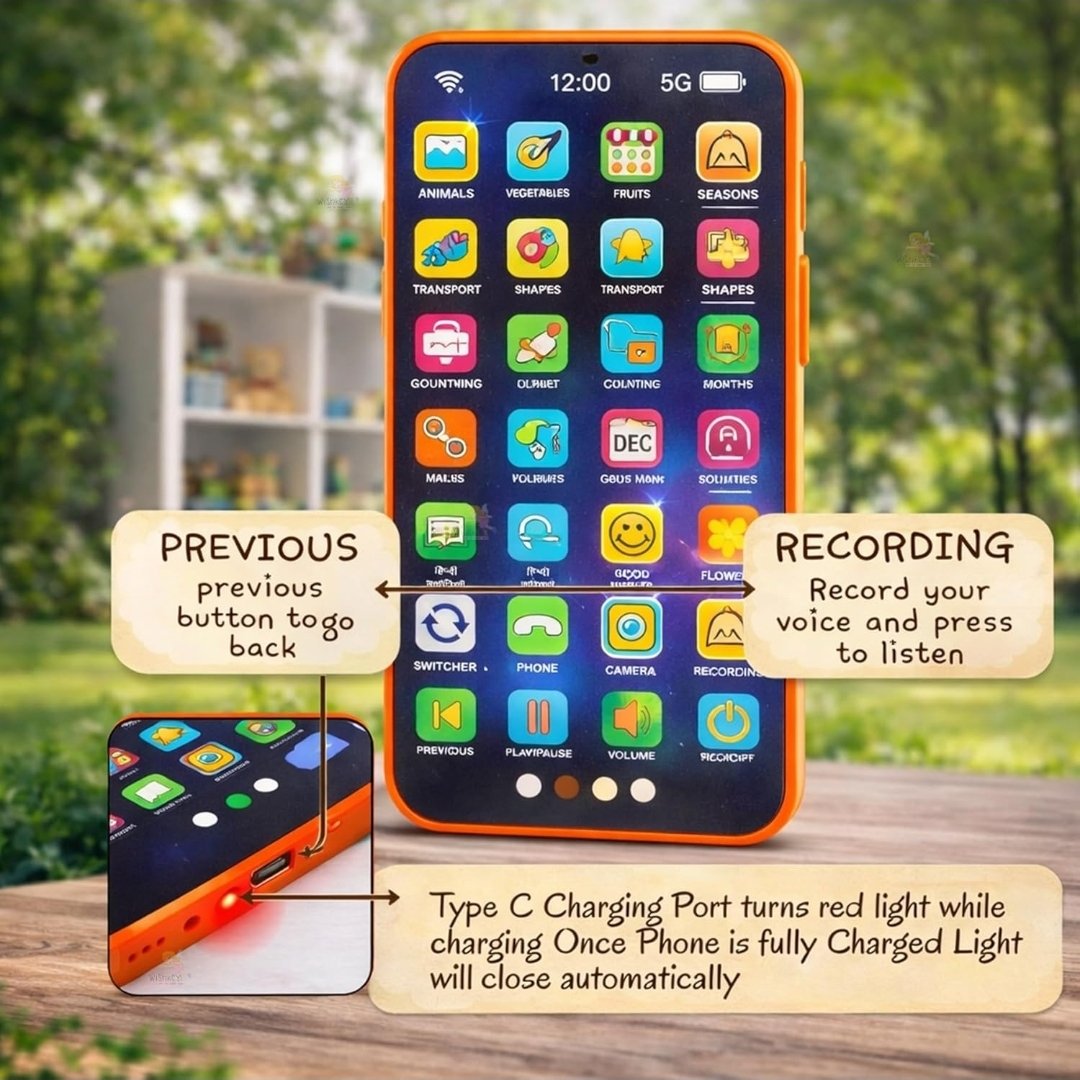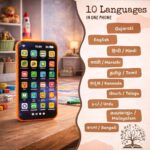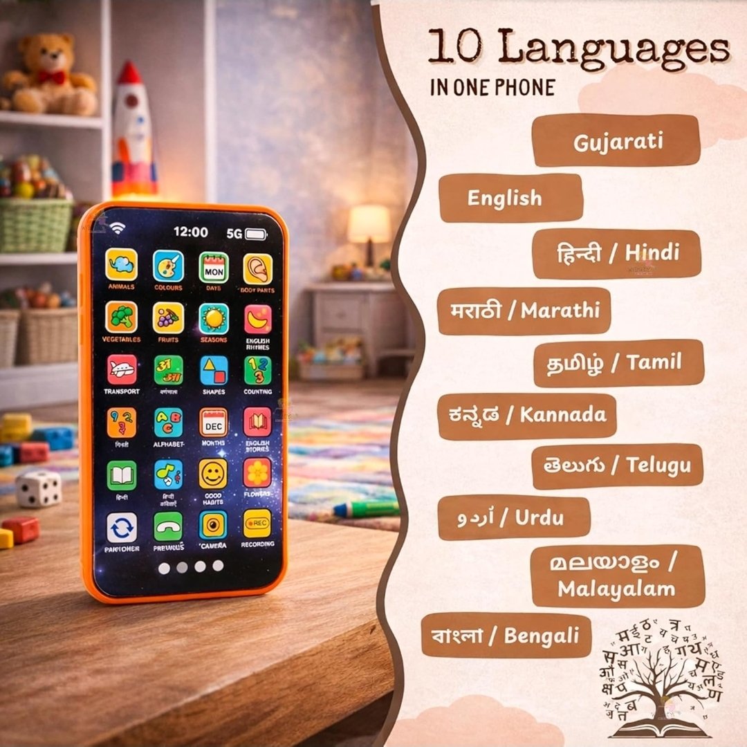 🌍 Multi-Language Learning – 10 Indian Languages Supports English, Hindi, Gujarati, Marathi, Tamil, Telugu, Kannada, Malayalam, Bengali and Urdu, helping kids build strong language and listening skills from an early age.