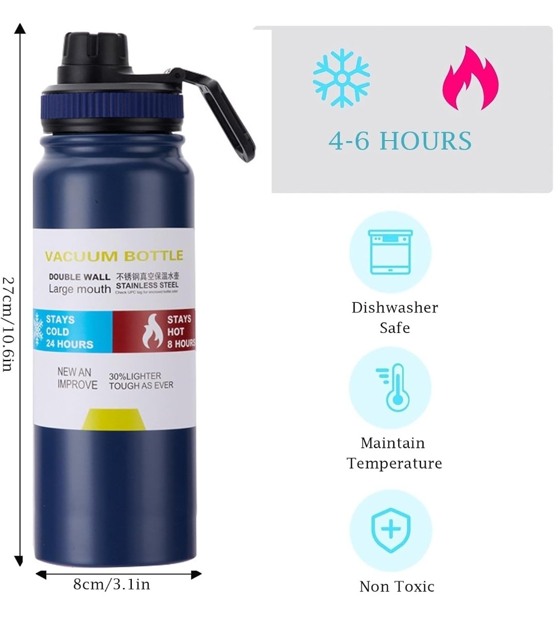 【Easy to Clean】This stainless steel vacuum water bottle is dishwasher-safe, completely freeing your hands and ensuring easy use.