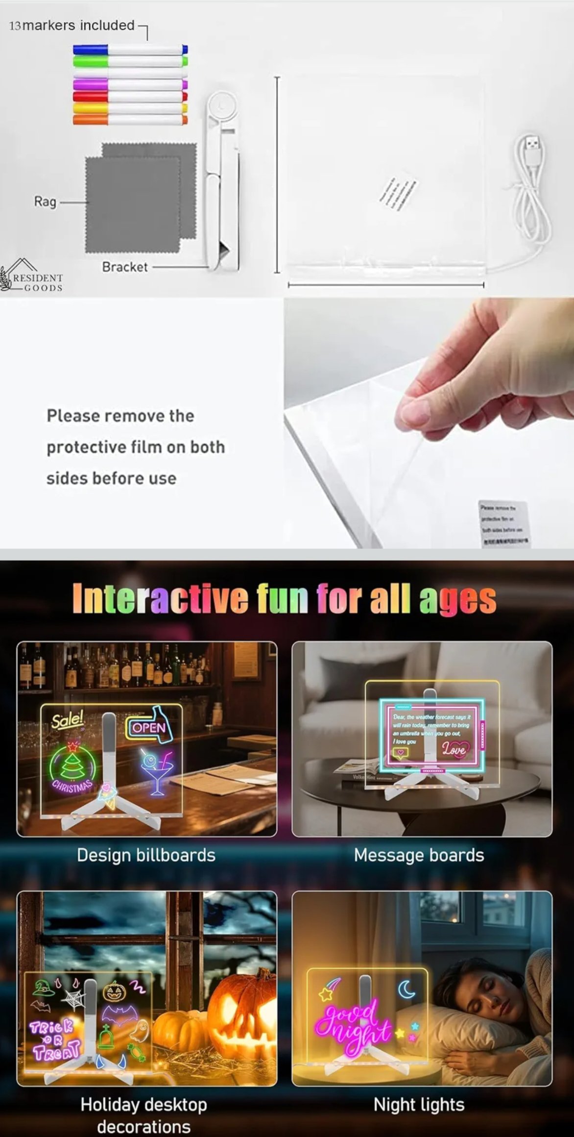 3D Acrylic Writing Pad With Pen Message Board Rewritable Table Lamp