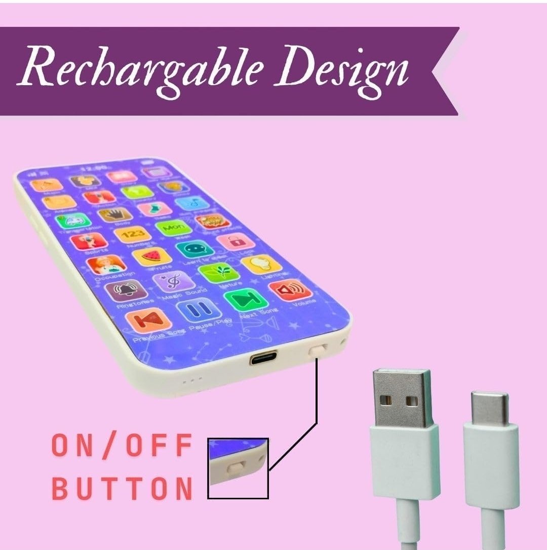 RECHARGEABLE PHONE TOY: The phone includes a 3.7v 150mAh Li-Po Rechargeable Battery (Included). Charging Time: 30 Min. The device can continuously play music for 3-4 hours after being fully charged! It comes with a USB Type-C charging cable.
